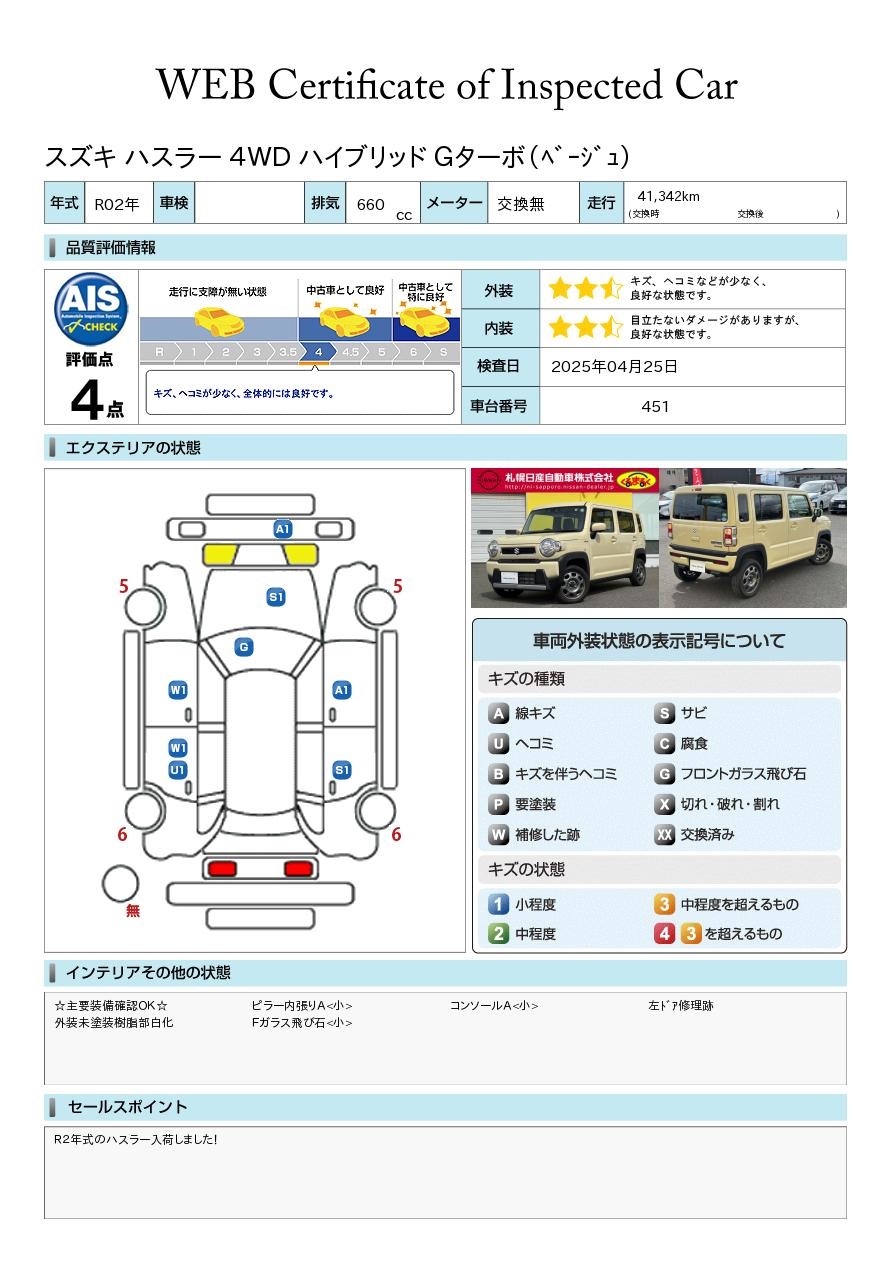 現状車検切れの状態ですが、ご成約時に新しく車検を実施します。車検費用は車両価格に含まれています。
