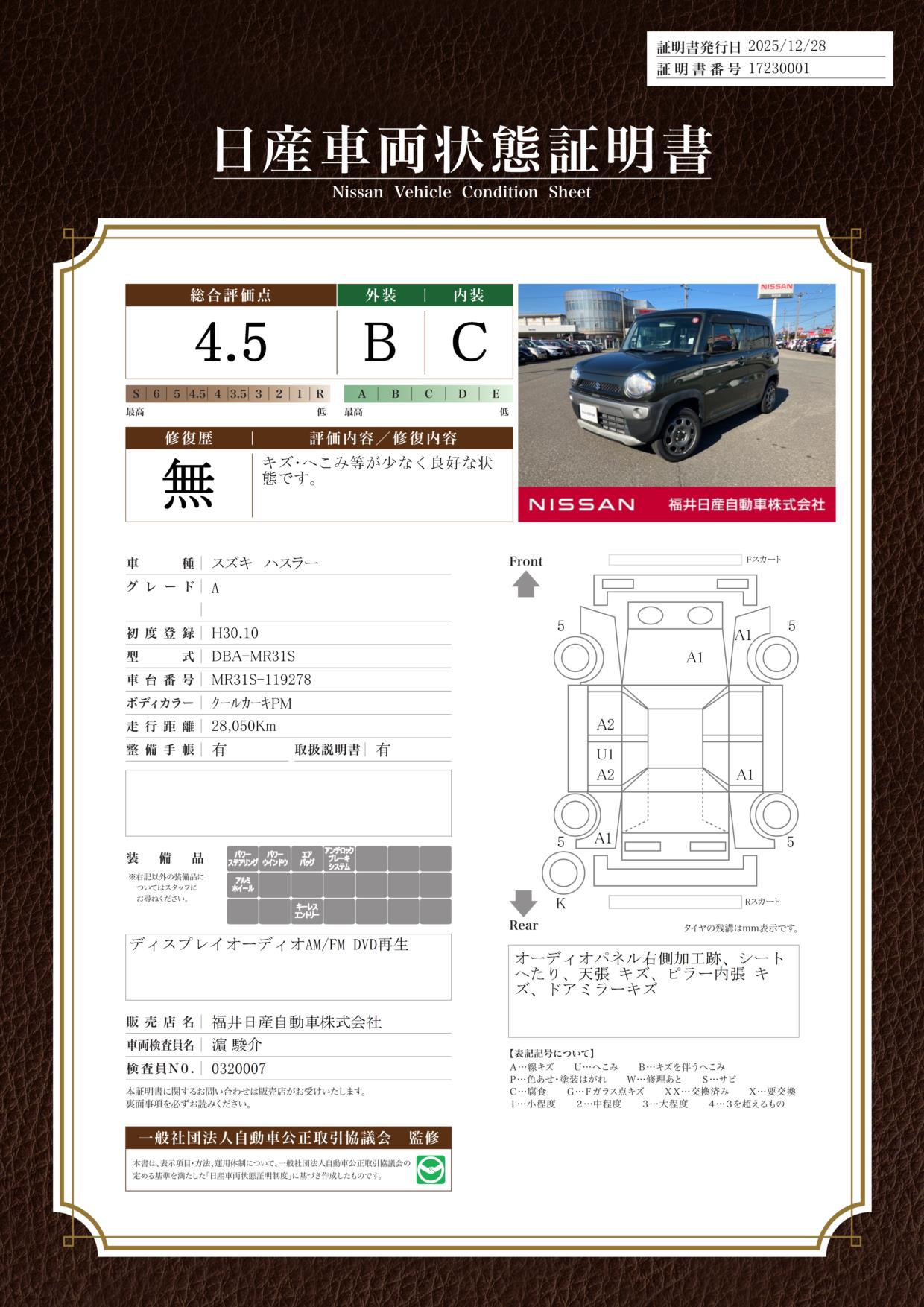 納車時に定期点検整備(費用は車両価格に含まれます。)