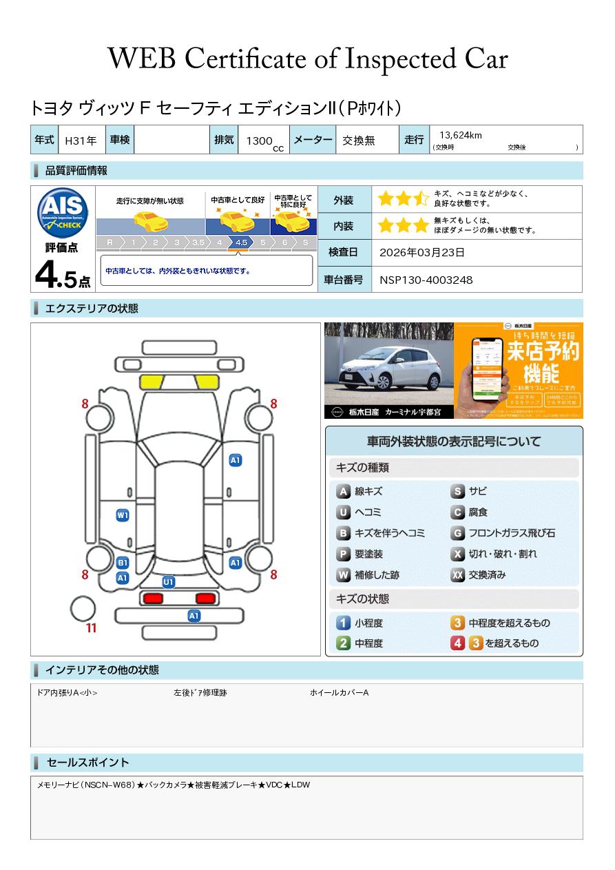 現状括弧書き内の年月まで車検有効期限が残っていますが、ご成約時に新しく車検を取り直します。なお取り直しの費用は車両価格に含まれています。