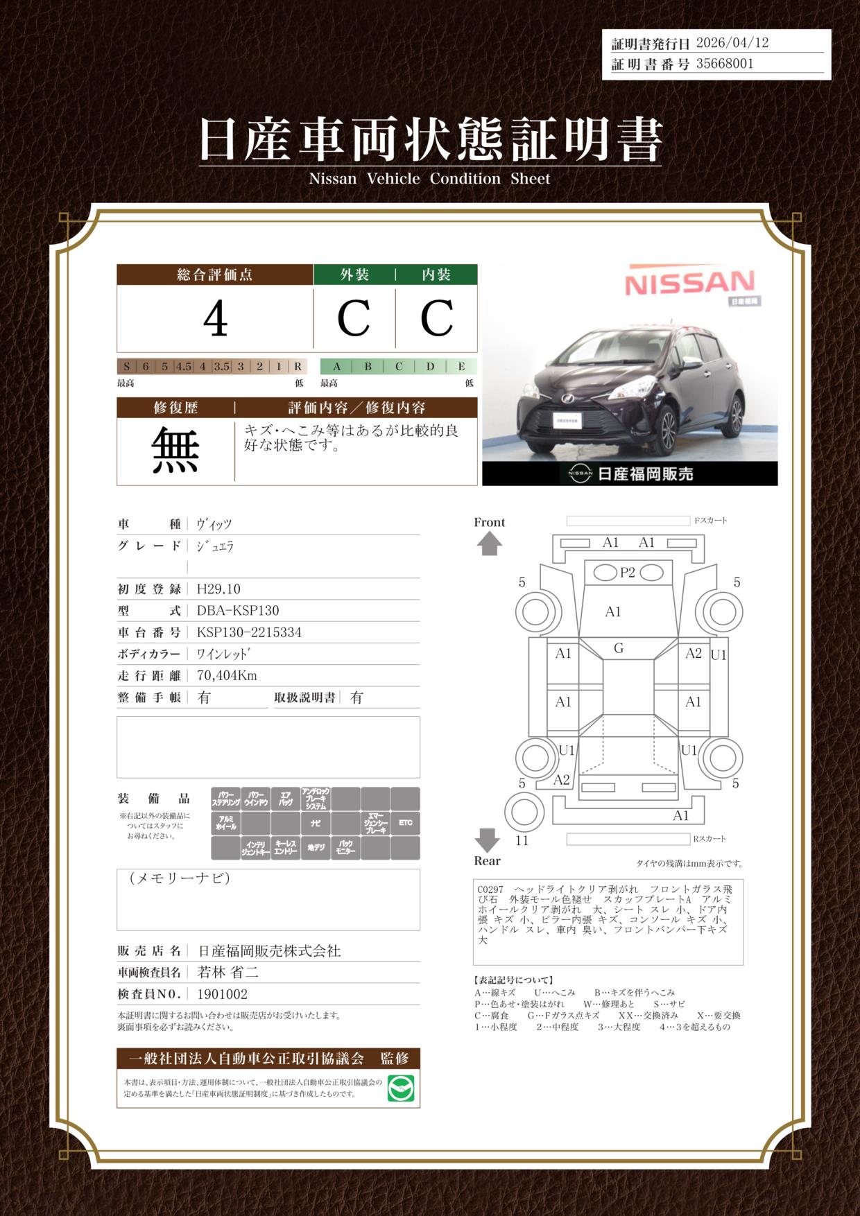 納車時に定期点検整備(費用は車両価格に含まれます。)