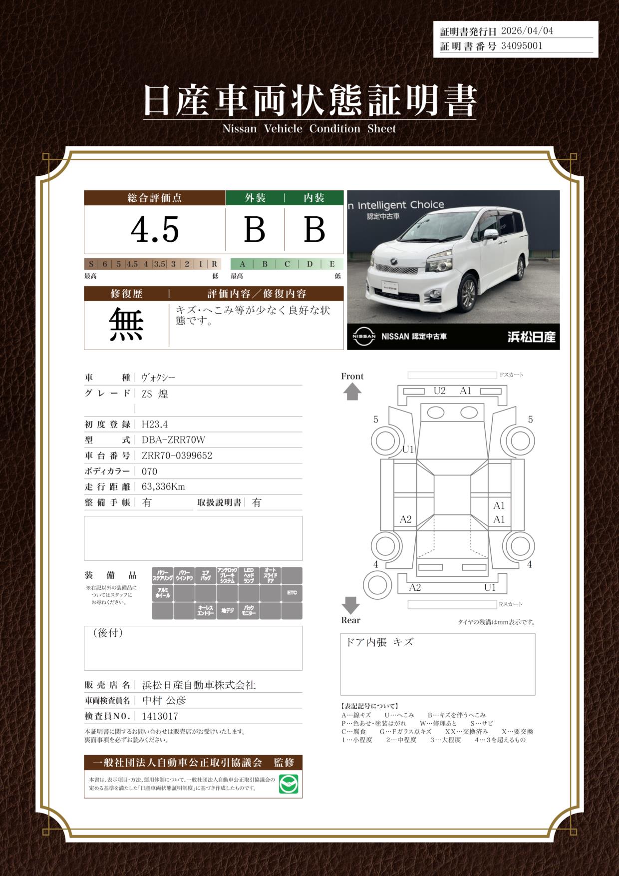 日産車両状態証明