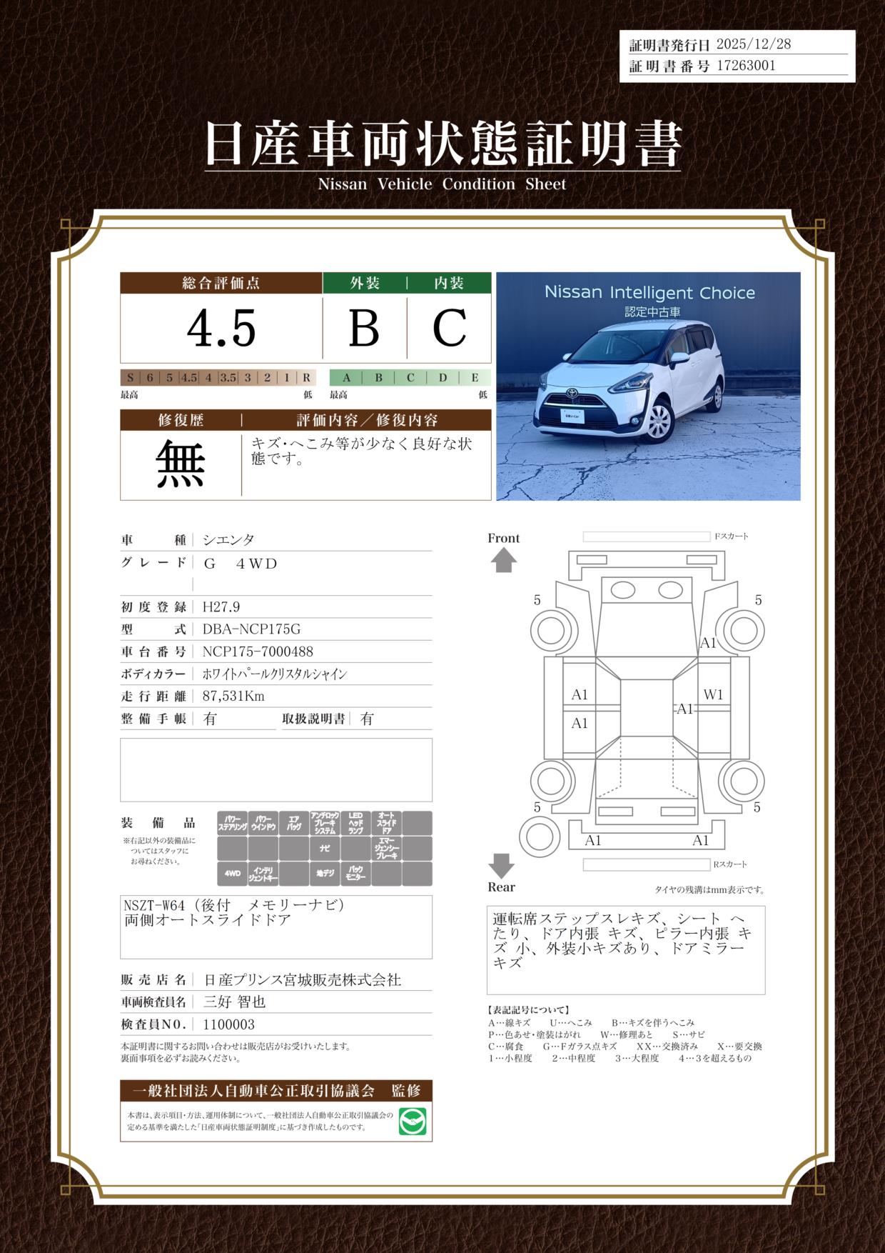 安心の全車日産ワイド保証付!プラス2年の延長保証もあります(走行無制限)♪ プレミアム認定中古車&日産認定中古車を多数取り揃えております。 自動車保険見積り(無料診断)、JAF、日産会員、クレジット販売 頭金なし~最長72回までOK!金利5.9%(固定)実施中! ◇全展示車クリーニング、ビニールシートカバー、紙マット、ハンドルカバーを徹底しております◇ 女性スタッフもおりますので、お一人様でのご来店でもお気軽にお越しください。 ※地下鉄東西線 「卸町駅」下車、徒歩5分
