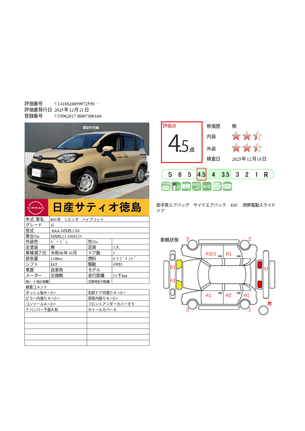 評価点イメージ : 中古車としては、内外装ともきれいな状態です。