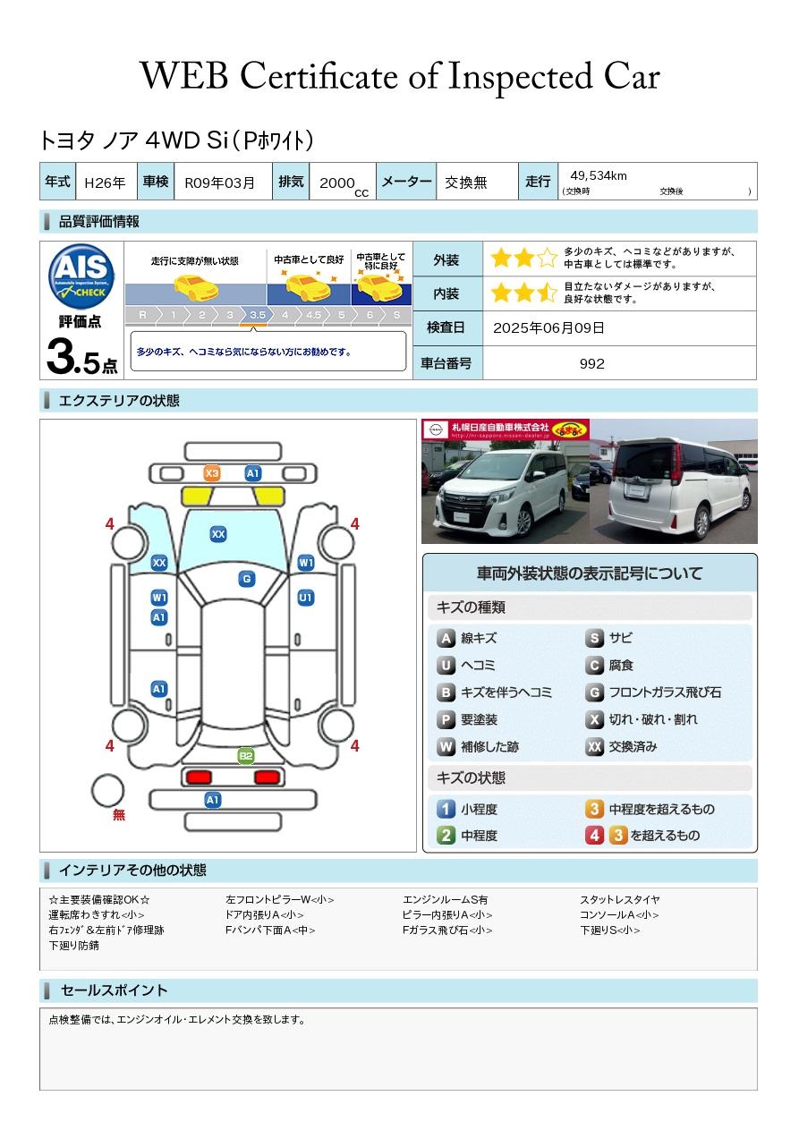 平成26年 ノア SI パールホワイト 4WD 入荷いたしました社外エンジンスターター トヨタ純正ナビゲーション バックカメラ 左側電動スライドドア ETC