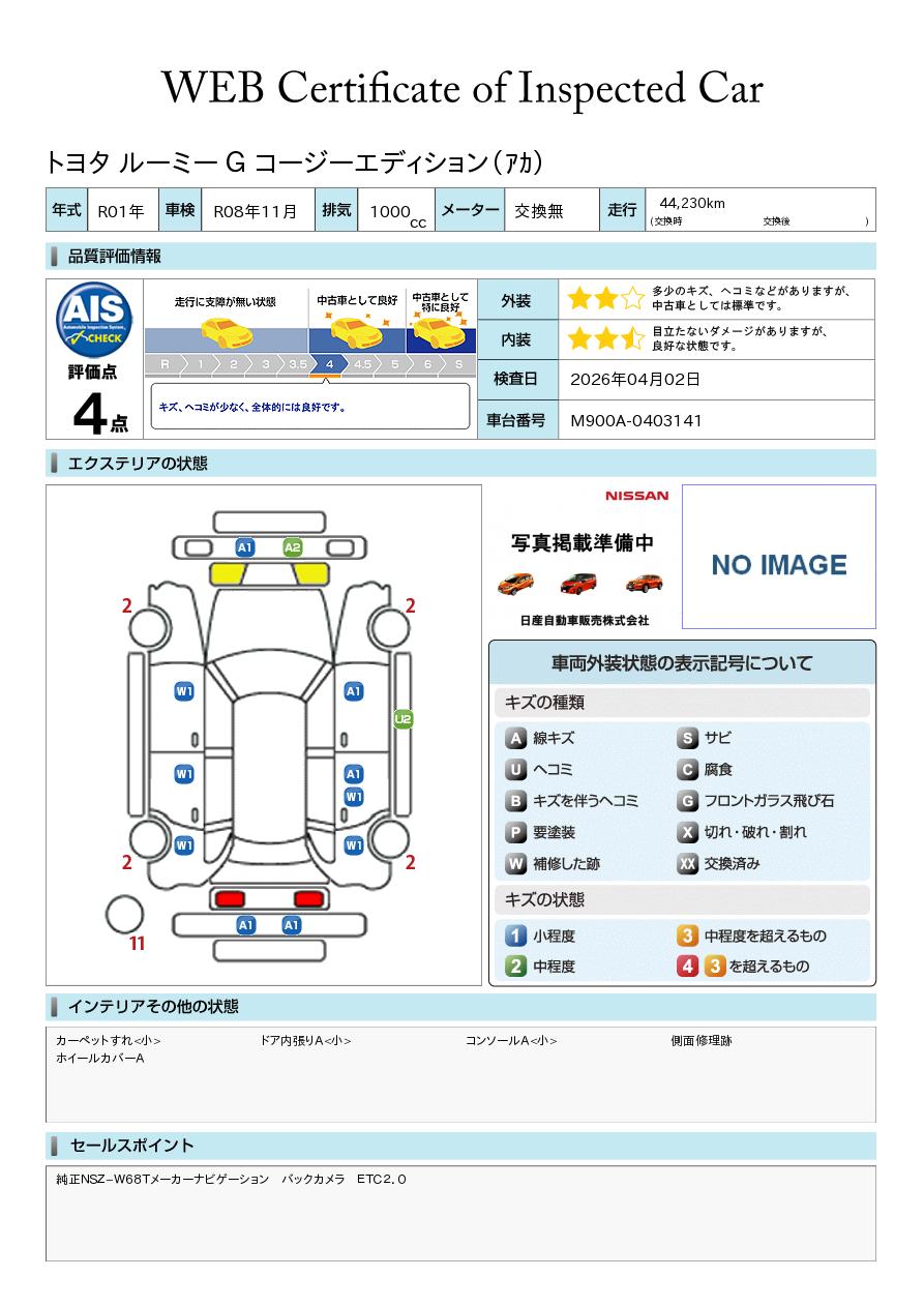 現状括弧書き内の年月まで車検有効期限が残っていますが、ご成約時に新しく車検を取り直します。なお取り直しの費用は車両価格に含まれています。
