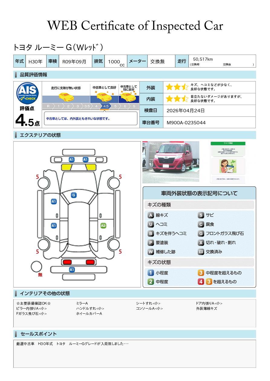 厳選中古車 H30年式 トヨタ ルーミーGグレードが入荷致しました・・・メモリーナビ 地デジTV バックカメラ 両側オートスライドドア 両側オートスライドドア ETC