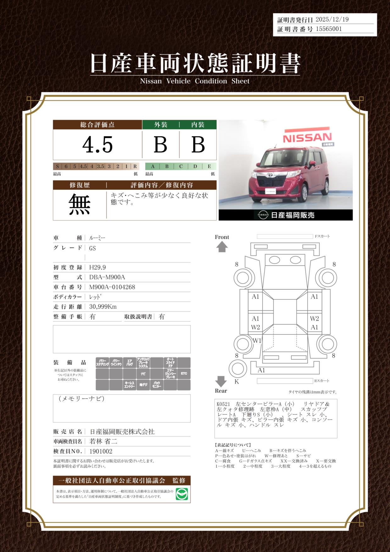 ルーミー 1000cc 1.0 G S 衝突被害軽減ブレーキ