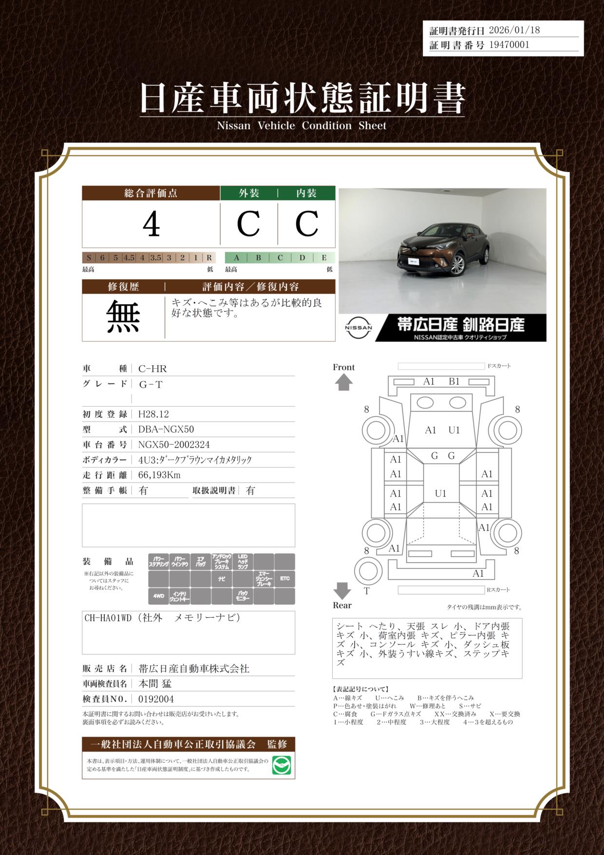 クーペのような流れるフォルム、ターボエンジンによる力強い走りと優れた燃費性能のC-HRが入庫しました!シートヒーター衝突被害軽減ブレーキ横滑り防止装置クルーズコントロール